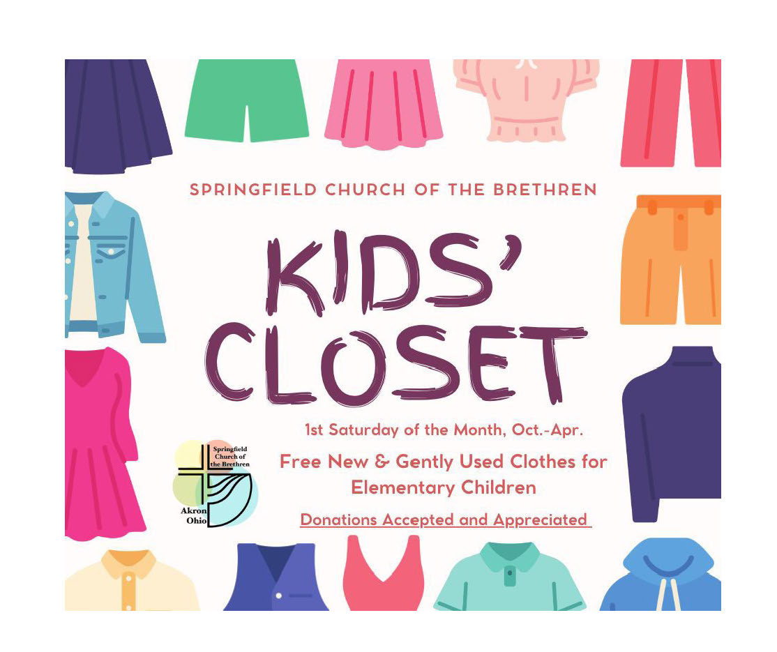 Please consider bringing the items listed below to District Conference to help support Akron Springfield's Church of the Brethren Kid’s Closet!!!